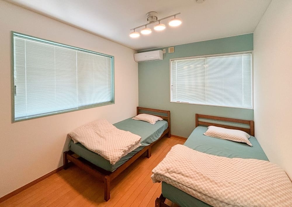 寝室は2階に4部屋あり、最大10名まで宿泊できる。部屋数にゆとりがあるため、子連れの家族同士や学生旅行といった大人数での滞在でも快適に過ごせるのが魅力だ。