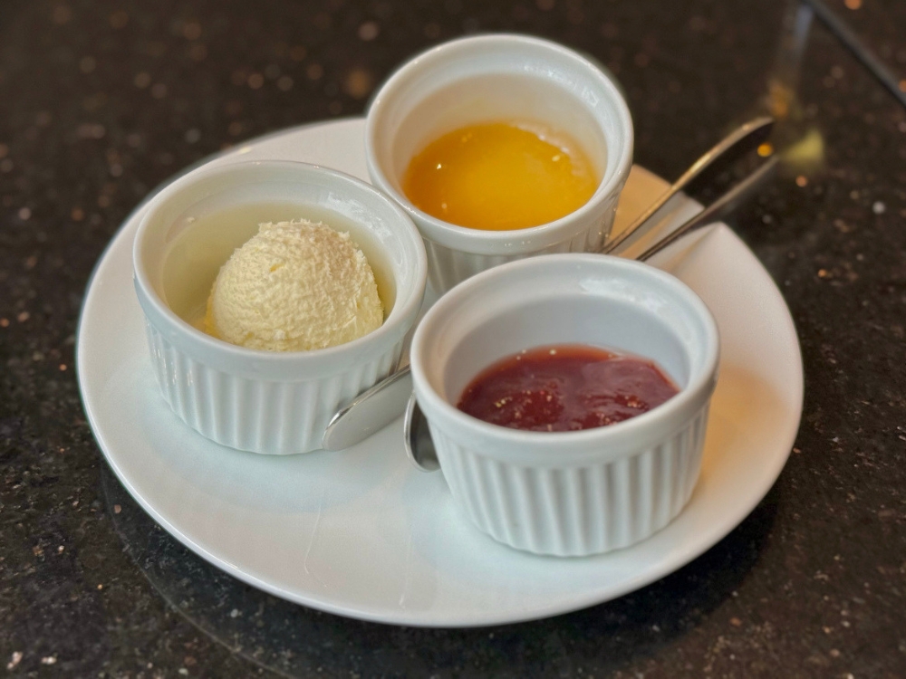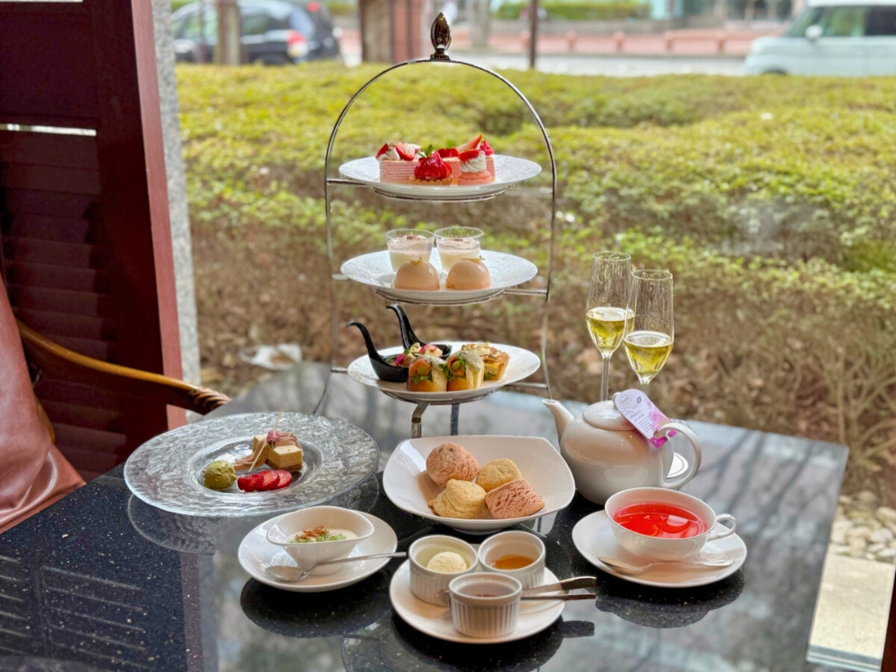 スコーンは桜風味とプレーンの2種。オーガニックシュガーのジャムとクロテッドクリーム、金沢の老舗「あめの俵屋」のじろ飴が添えられています。最初は「なぜじろ飴?」と思いましたが、一口食べてみると意外なほど相性が良い。アフタヌーンティーという舞台に、金沢ならではの食材をさりげなく忍ばせる。地元の味をこんな形で楽しめるのも、このアフタヌーンティーの魅力のひとつだと思いました。