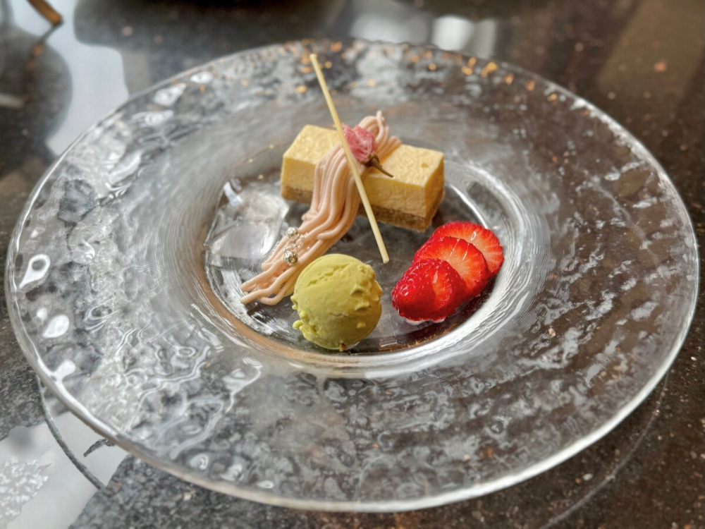 今回のスイーツの中で特に印象に残ったのが、「桜と求肥のムース」。口に入れた瞬間のもちもちとした食感、そしてじんわりと広がる桜の風味。繊細でやさしい味わいで、和の心地よさとアフタヌーンティーの世界観がうまく溶け合っていると感じました。