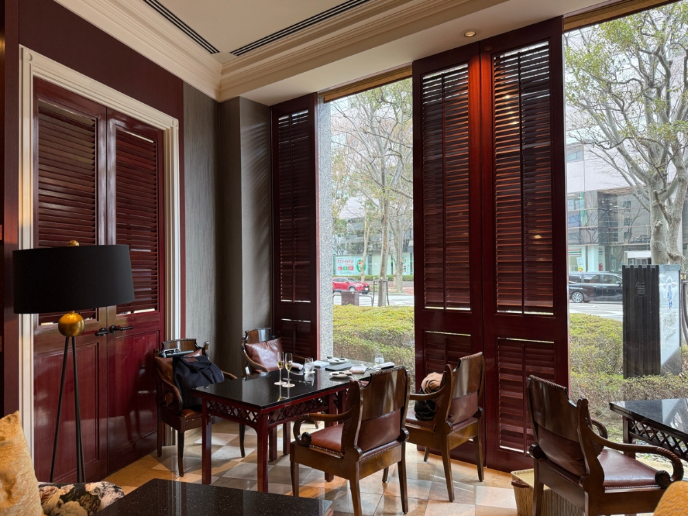 エントランスを抜け、会場へ。足音がやわらかくなる絨毯、さりげなく整えられた調度品。優雅で趣のある空間に「ここだけの時間が始まる」という感覚になりました。席に案内されると、大きな窓から柔らかな光が差し込み、落ち着いた空間が広がっています。ゆったりとした椅子に腰を下ろすと、なんとも上質な空気感。気づけば時間の流れがゆっくりになったような感覚です。大切な人とゆっくり過ごしたいときにぴったりの場所だと思いました。さすがと感じたのが、案内してくださるスタッフさんの所作のひとつひとつに、高級ホテルならではの品格が宿っていました。