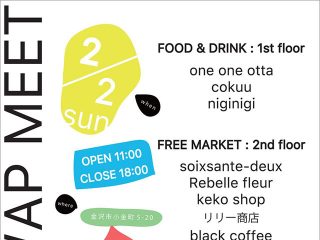 雑貨店『ARLES(アルル)』の1階・2階を会場に、花屋・八百屋・美容・雑貨など自営でお店をしている人たちが集まり、フリーマーケットを行う。(続きを読む)