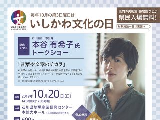 石川県では10月第3日曜日を「いしかわ文化の日」と定めており、「いしかわ文化の日」を記念して、石川県白山市出身の芥川賞受賞作家、本谷有希子氏(続きを読む)