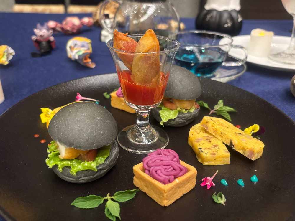 今回のメニューについて、シェフから直接話を聞くことができました。テーマは“仮装パーティーのように楽しく”ということ。血や傷といったホラーの要素はあえて取り入れず、誰もが安心して楽しめる雰囲気を大切にしているそうです。