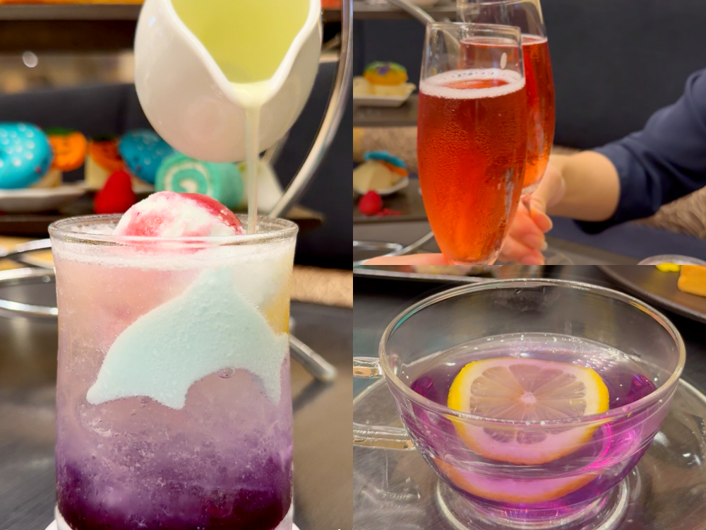 さらに、フリーフローの紅茶にはTWGや石川産ハーブティーがそろうほか、10月限定の「ソォシエー」も登場。レモンを加えると色が変わる仕掛けで、透明のティーカップの中が幻想的に染まっていきます。