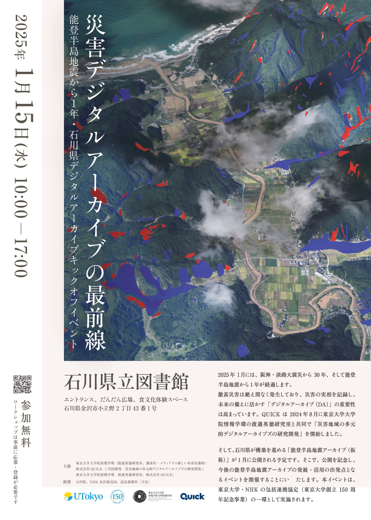 【1/15(水)】東大発「災害デジタルアーカイブの最前線」イベントを石川県立図書館にて開催。