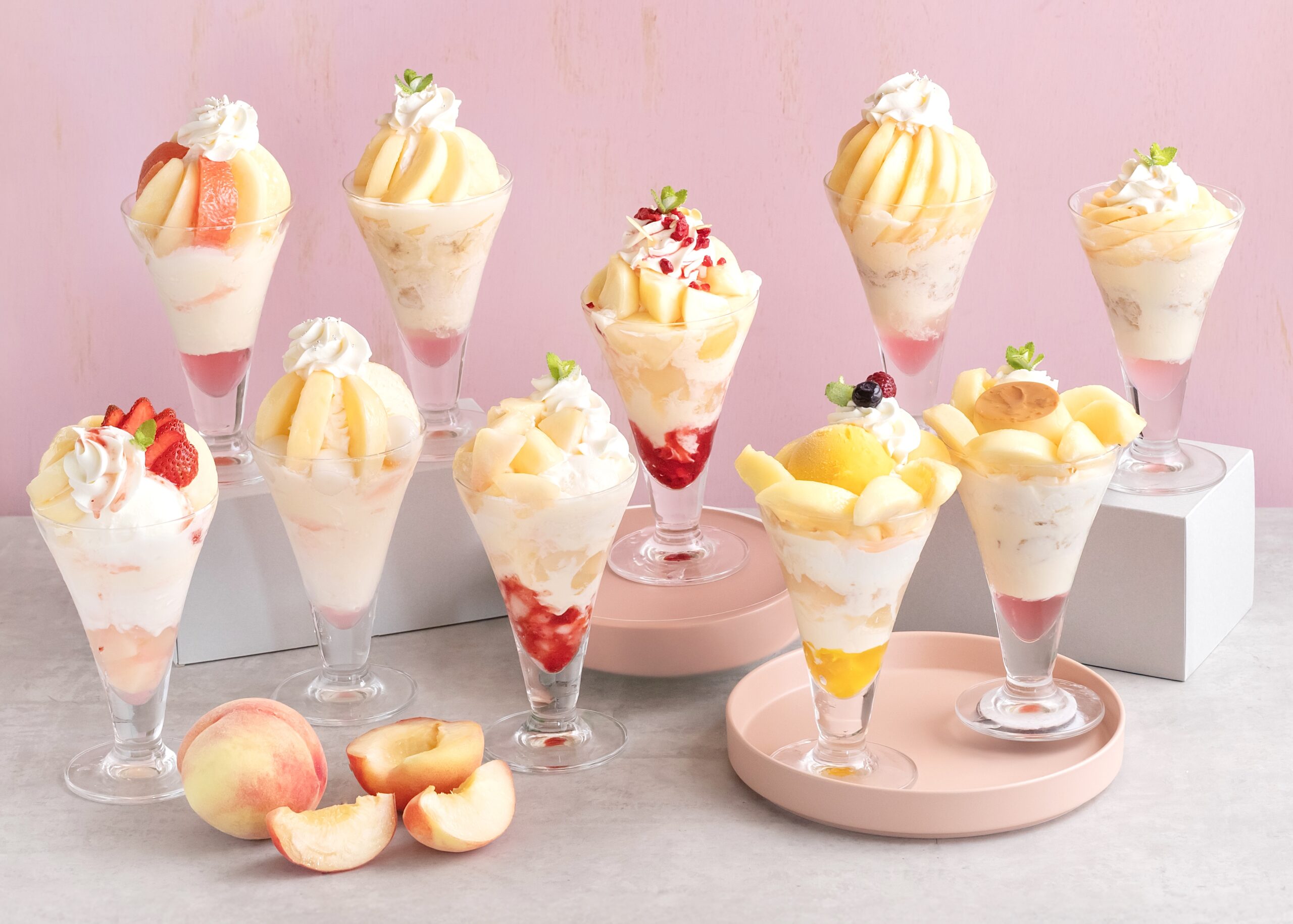 『ちむちむ堂』の桃フェアがスタート。丸ごと桃や個性派スイーツなど、10種以上の桃パフェが夏を彩る