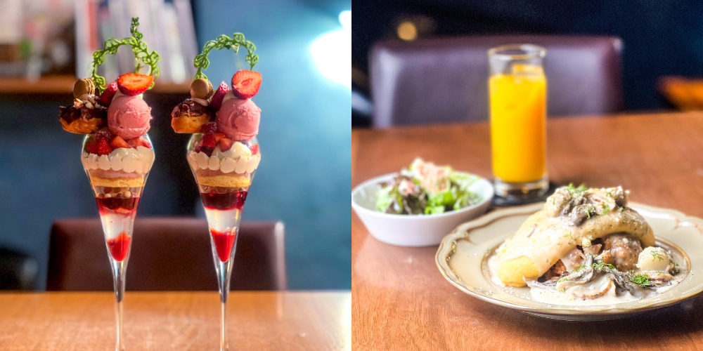 そんな同店でオムライスと並んで人気なのがまるでアート作品のようなパフェ。見た目の華やかさはもちろんのこと、グラスの中にはたっぷりの果物やジェラートが入っており、最後まで楽しんで食べることができる。今回は期間限定の新作パフェに注目したい。