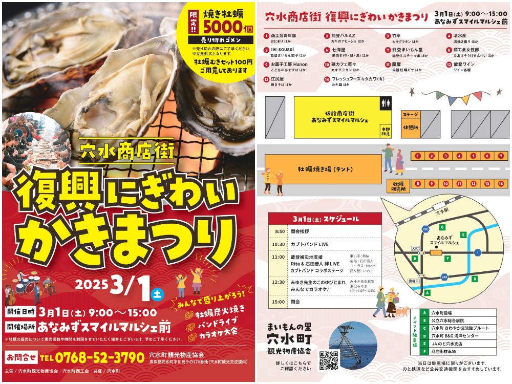 【3/1(土)】焼き牡蠣限定5,000個。「穴水商店街 復興にぎわいかきまつり」を開催。