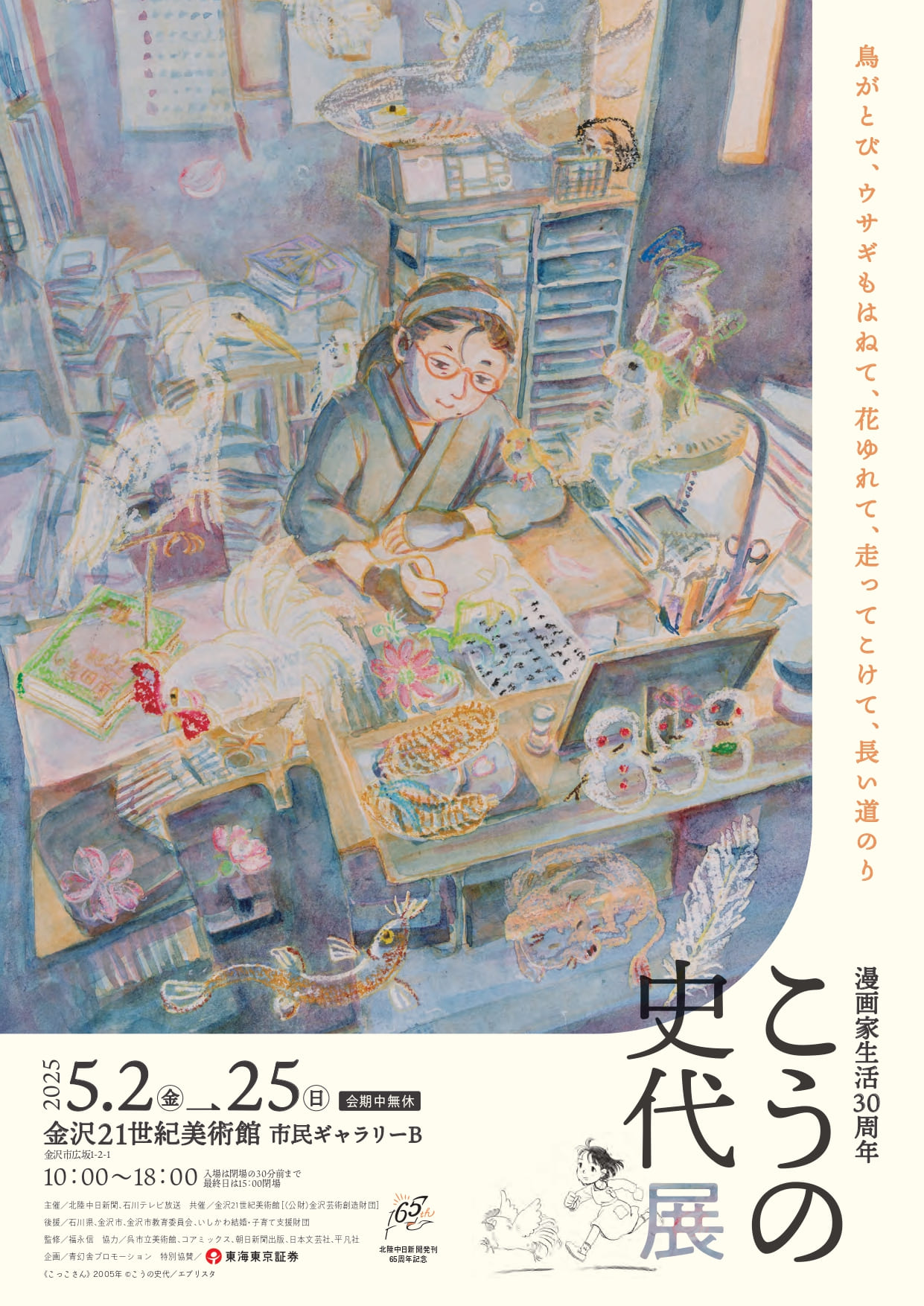現代の日本を代表する漫画家・こうの史代さんの初の大規模展覧会「漫画家生活30周年 こうの史代展 鳥がとび、ウサギもはねて、花ゆれて、走ってこけて、長い道のり」が、5月2日(金)〜25日(日)に『金沢21世紀美術館』にて開催される。1995年のデビューから今に至る道のりを辿る内容となっており、代表作である「夕凪の街 桜の国」や「この世界の片隅に」を含む多彩な作品が紹介される。