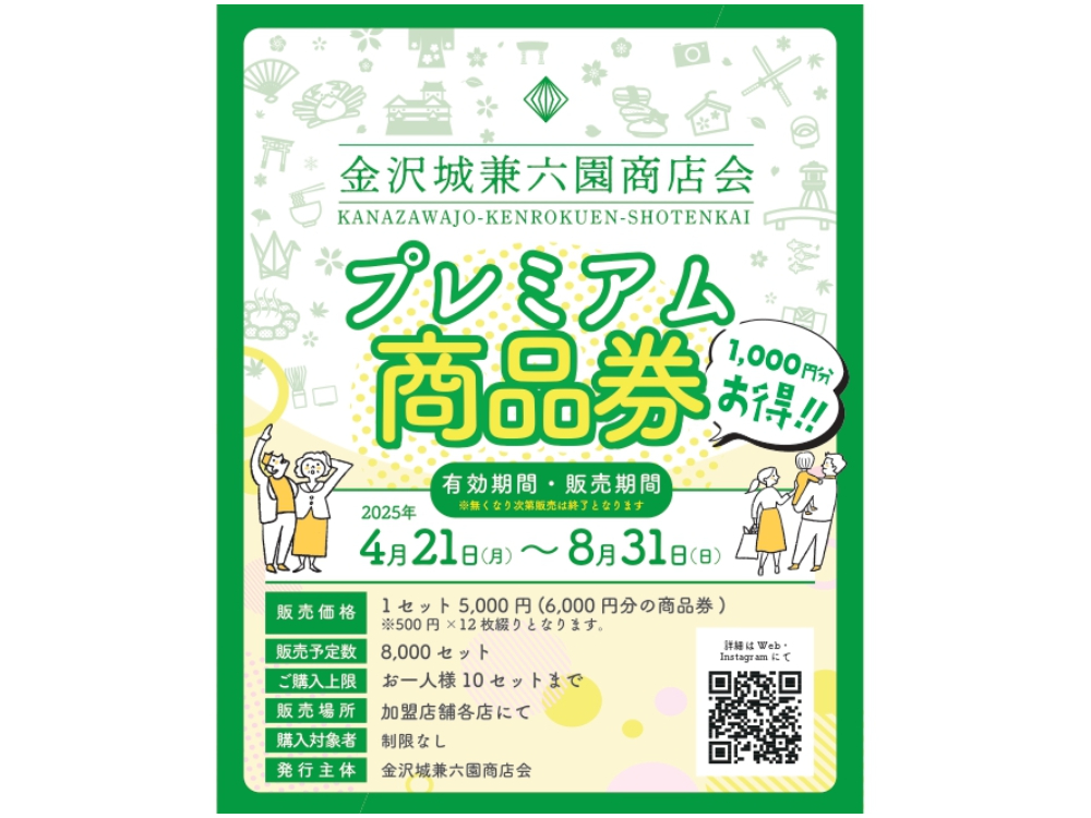 【20%お得】金沢城兼六園商店会プレミアム商品券、好評販売中!!