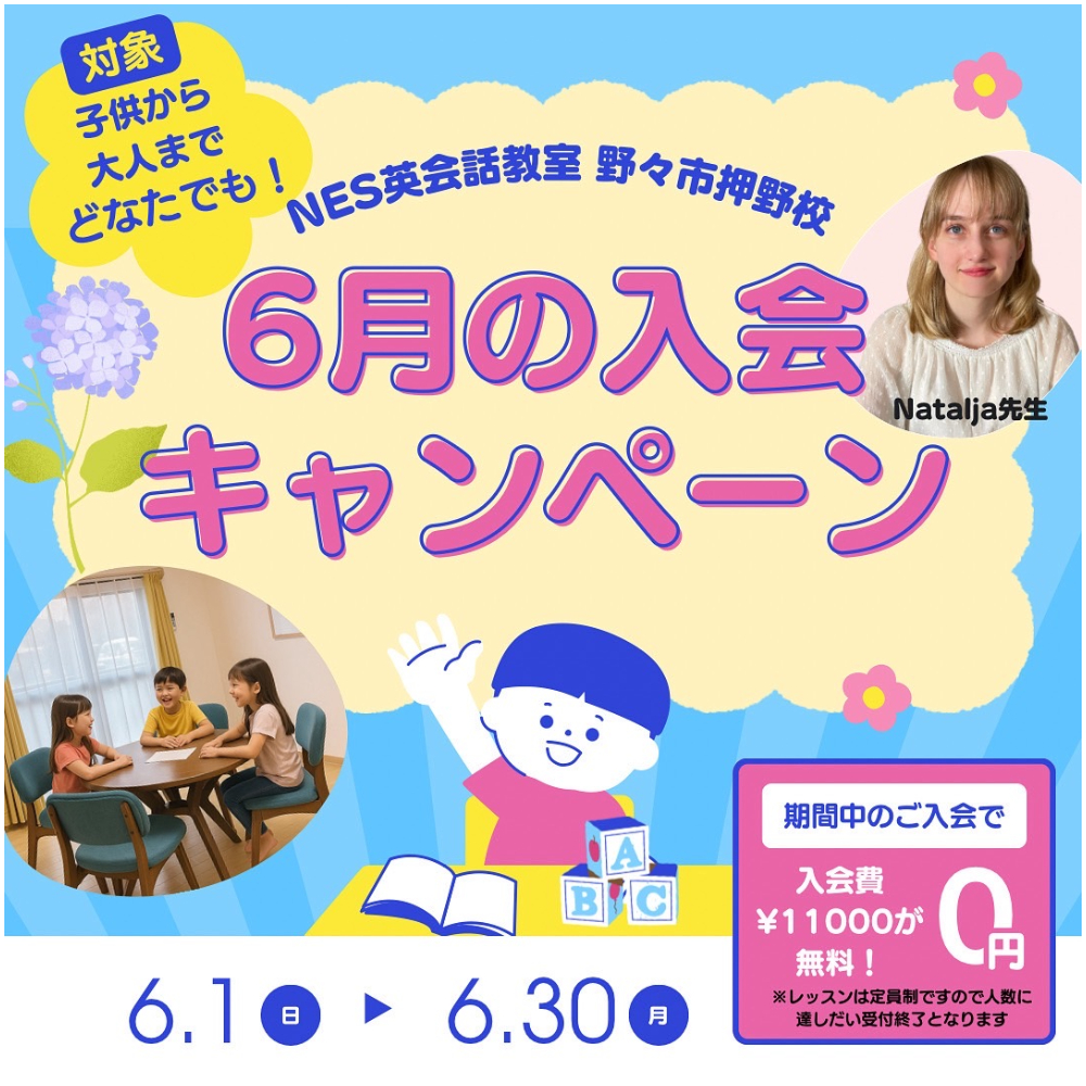 教室を主宰するナタリア先生は、ウクライナ生まれ。7歳からドイツで育ち、日本に移住。さまざまな国の文化に触れて育ち、現在は4ヶ国語を習得している。6月の入会キャンペーンは、期間中の入会で11,000円の入会費が無料となるお得な内容。対象は英語耳を育てたい子どもから、英語の学び直しをしたい大人まで、どなたでも大歓迎。レッスンは定員制のため、人数に達し次第受付終了となるので、気になる方はお早めに。