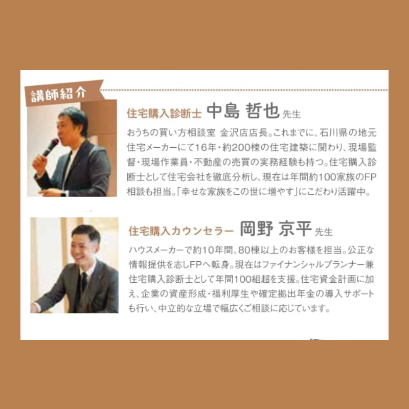 - 【マイホームに関する講師はこの2人】