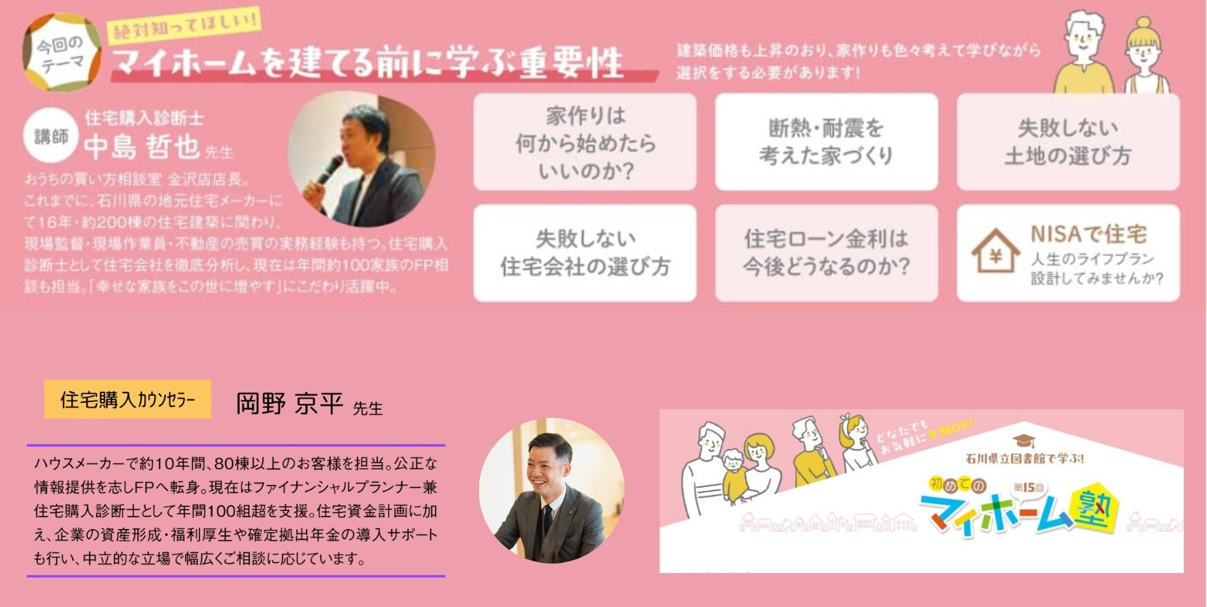 【マイホームに関する講師はこの人たち】