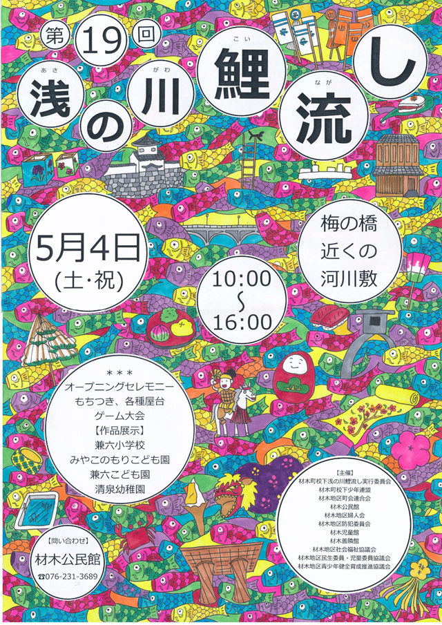 5月の空に浮かぶ鯉のぼりを友禅流しのように浅野川の梅ノ橋から浅野川大橋までの河川に流す、全国でも珍しいイベント『浅野川・鯉流し』。川の中を鯉のぼりがいきいきと泳ぐ姿を楽しんでみては。