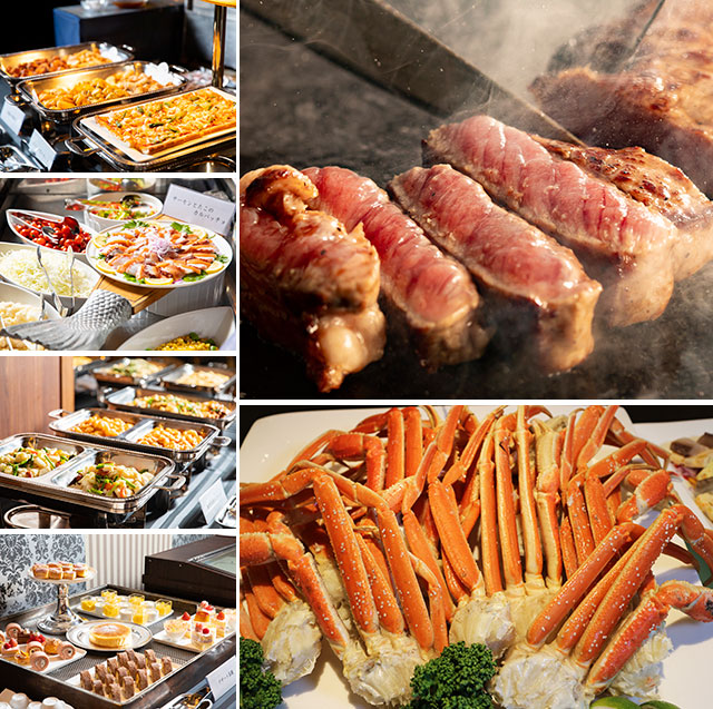 和洋中からステーキにカニ、デザートまでが食べ放題。