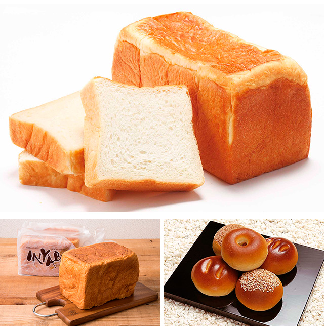 上/『乃木坂な妻たち』豊潤な妻 下左/『ミヤビ』デニッシュ食パン 下右/『銀座木村屋總本店』酒種あんぱん 五色