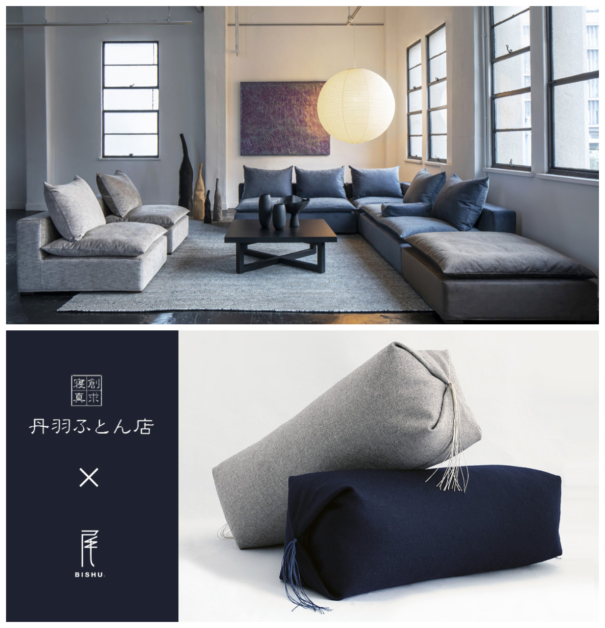 内閣総理大臣賞の布団をはじめ、各分野の匠がコラボしたオリジナルソファ。