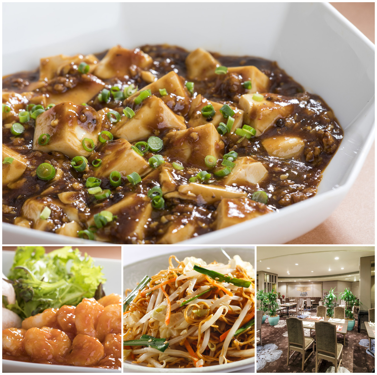 茹で豚肉の薄切り ピリ辛ソースかけ、蒸し鶏の細切り胡麻ソース、海老のチリソース、イカの細切りと野菜の炒め、蟹肉入り玉子炒め、海老のマヨネーズソース サラダ添え、鶏肉の唐揚げ、鶏肉の揚げ物サワーソースかけ、酢豚、豚肉とキャベツの唐辛子味噌炒め、豚肉とキクラゲもやしの炒め、牛肉と青野菜の炒め、牛肉とピーマンの細切り炒め、マーボー豆腐、野菜のクリーム煮、季節のグリーン野菜炒め、フライドポテト、野菜サラダ、青菜入りふんわり玉子スープ、中華粥、五目チャーハン、広東式 特製炒め焼きそば、五目入り焼きそば、葱香味つゆそば、小海老入り蒸しライスペーパー、春巻き、黒豚シューマイ、チャーシュー饅頭、カスタード饅頭、蒸しカステラ、シンプル杏仁豆腐、タピオカ入りココナッツミルク、ライチシャーベット、マンゴーシャーベット、バニラアイスクリームなど