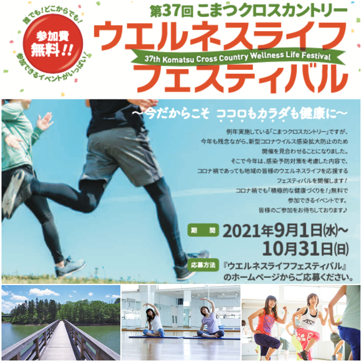 毎年実施されている「こまつクロスカントリー」だが、今年は感染予防対策を考慮したスタイルに変更。コロナ禍であっても地域の人たちのウエルネスライフを応援するイベント『ウエルネスライフフェスティバル』として10月31日(日)まで開催される。