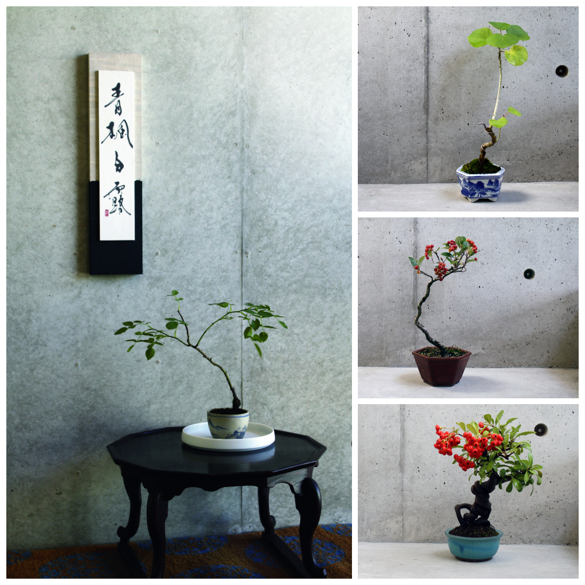 「書×盆栽」のコラボレーション。穏やかな空気に心癒されるひと時を。