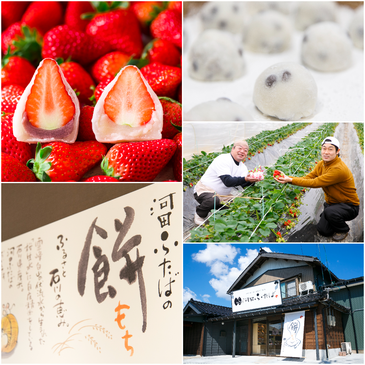 瑞々しい果汁があふれ出る苺と大福の究極コラボ。 70周年を迎えた『河田ふたば』の特製いちご大福。