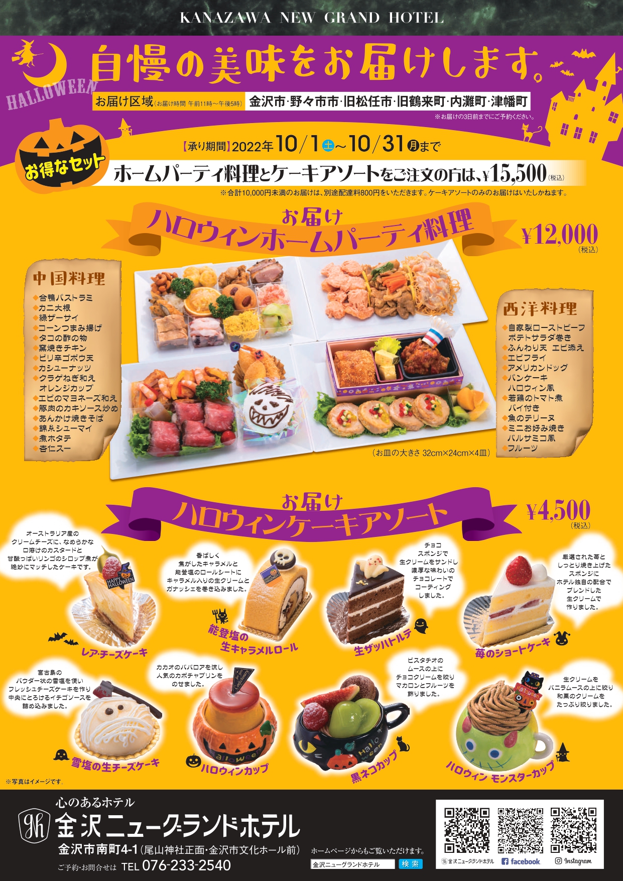 金沢ニューグランドホテル【〜10/31(月)】ハロウィンケーキアソート&パーティ料理をお届け。『金沢ニューグランドホテル』