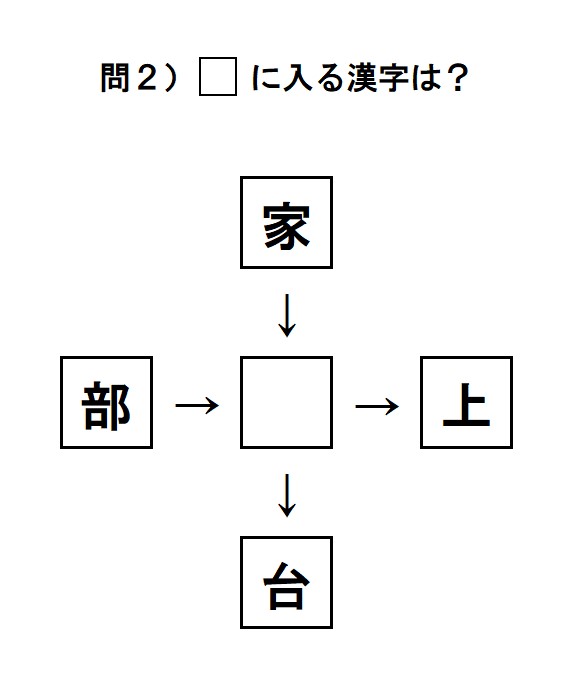 問2)正解は「屋」。家屋、部屋、屋上、屋台。