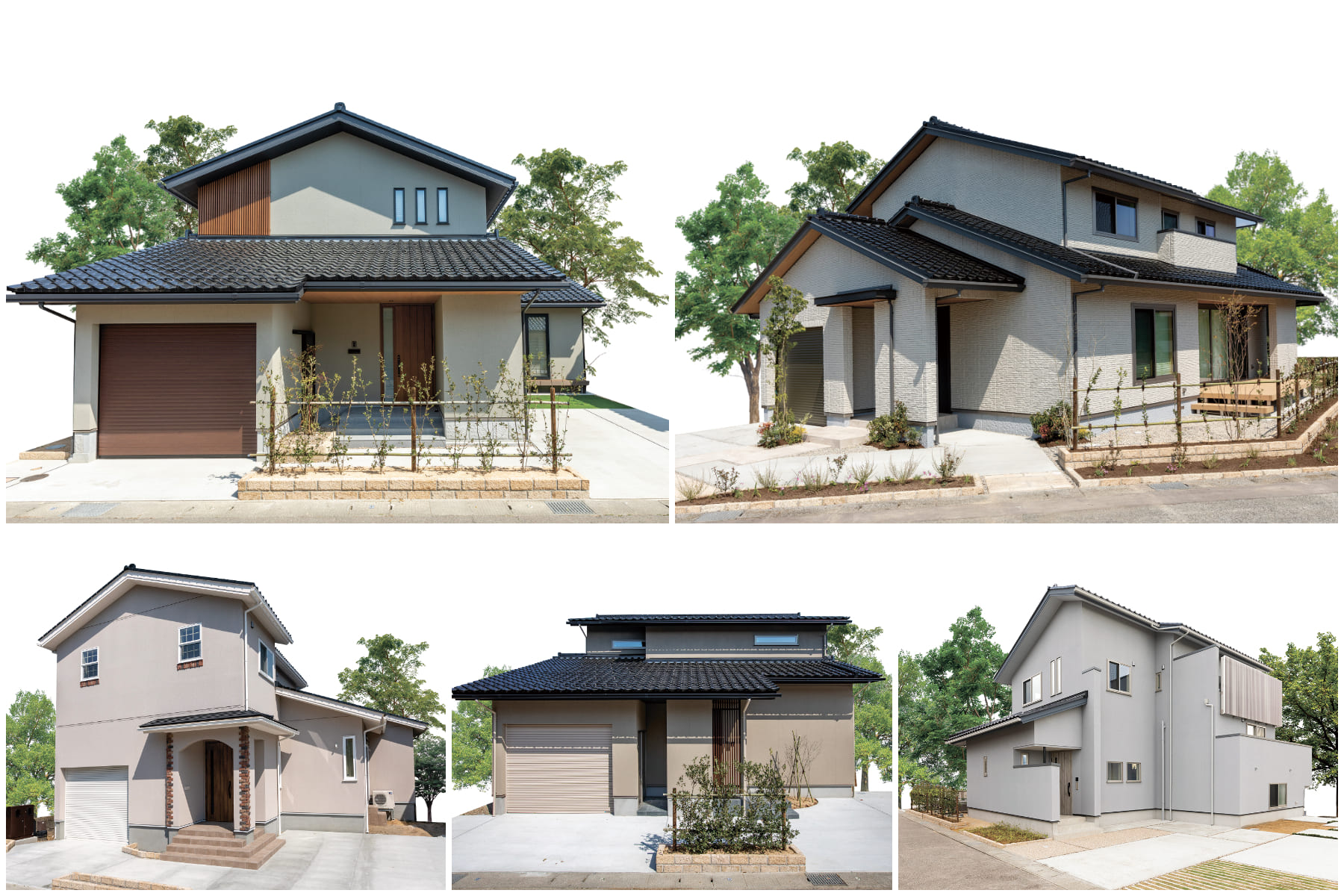 落ち着いた黒瓦・勾配屋根の家並み、茶色やグレーを基調にした家並みで調和のとれたイメージを創出。また、生垣や木々で緑を感じられる環境も魅力的だ。