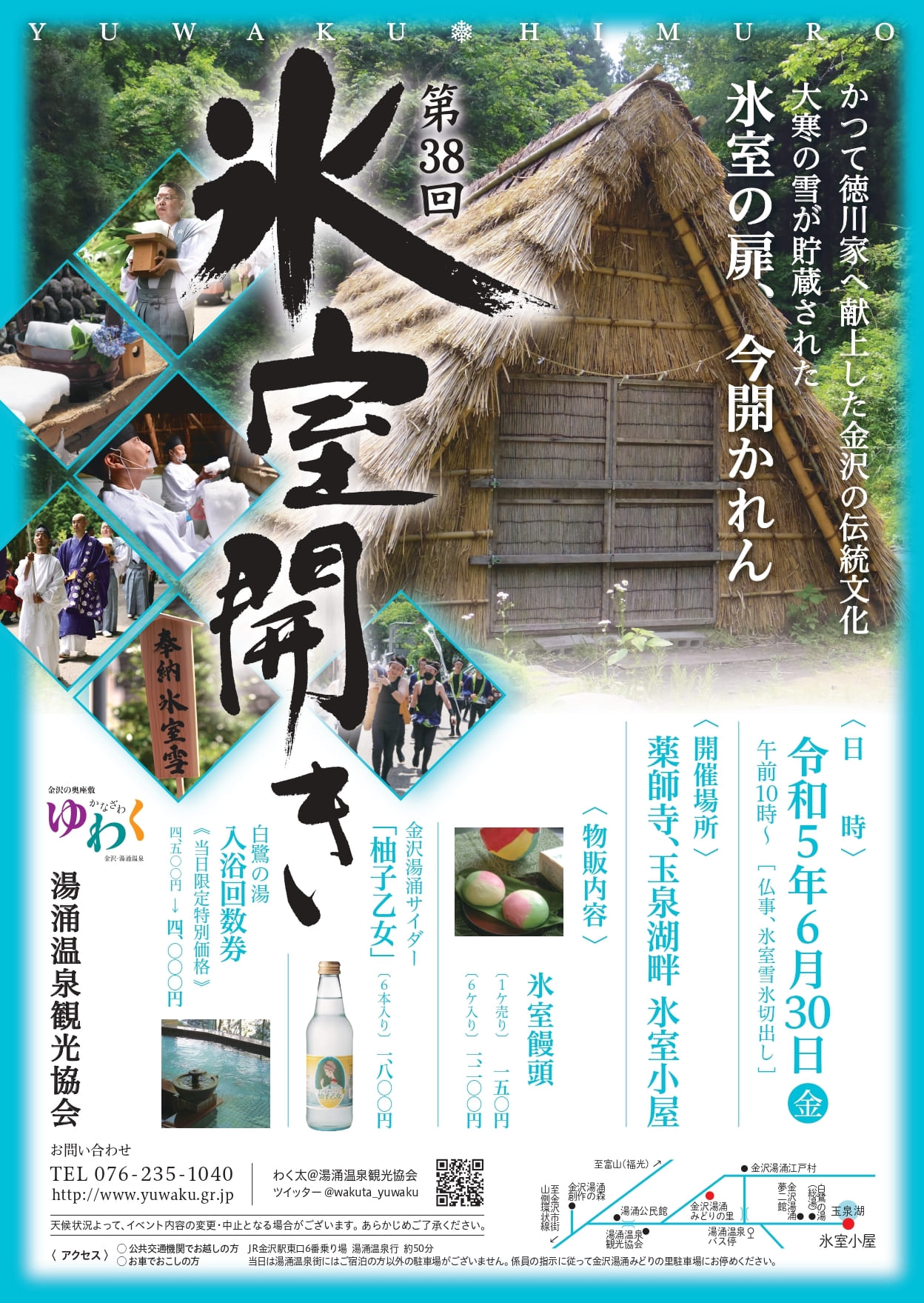 2023年は6月30日(金)に「氷室開き」を開催。当日は10時より仏事や氷室の雪氷の切り出しが行われ、氷室饅頭や湯涌サイダー、ご当地ジェラートなど、湯涌ならではのグルメなどが販売される。