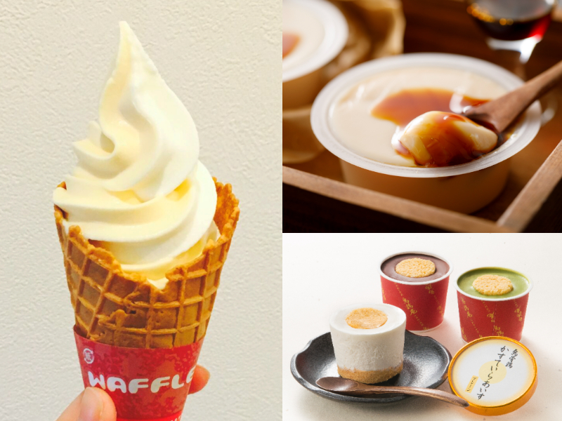 大切な人への手みやげに喜ばれている「烏骨鶏かすていら」が代表銘菓の『烏鶏庵(うけいあん)』に夏限定スイーツが登場。「烏骨鶏卵そふとくりーむ」は全2種類。西念にある本店では、さっぱりとした味わいの"白身"のソフトクリームが楽しめる。また泉ヶ丘店、東山店の2店では、白身のソフトクリームとより濃厚な黄色いソフトクリームの"黄身"の2種類の味が一度に味わえる。それぞれの味の違いを食べ比べてみるものおすすめ。なお、東山店では金箔をふりかけた豪華なソフトが販売されており、観光客からも好評だ。この他、烏骨鶏の卵の濃厚な風味をそのまま感じられる「烏骨鶏プリン」や「烏骨鶏かすていらアイス」などの冷たいおやつも取り揃えている。