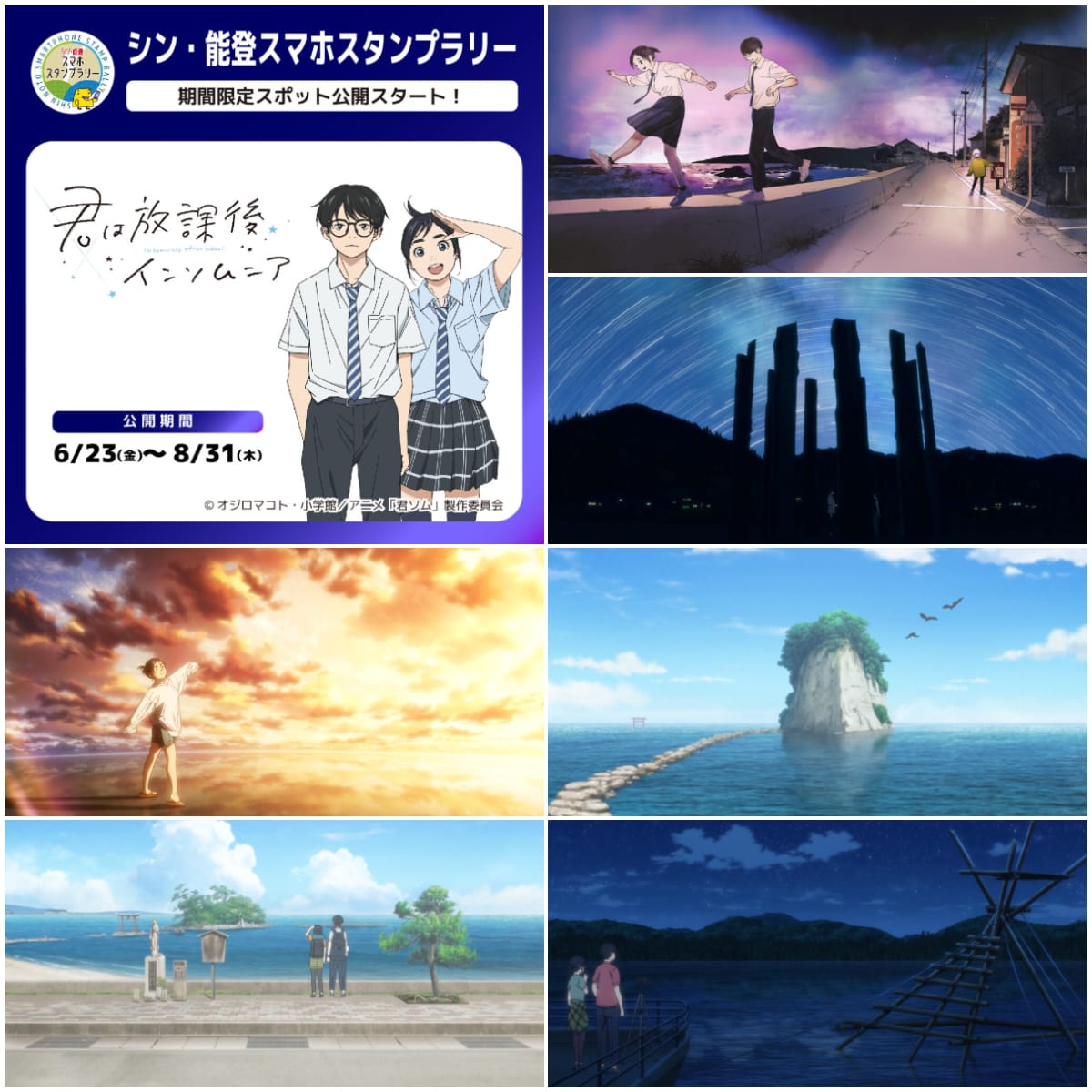 そんな中、4月から実施している「シン・能登スマホスタンプラリー」において、能登地域が舞台となった『君は放課後インソムニア』の原作漫画やアニメに登場する5つのスポットを期間限定地点として設定。それに伴い、常設地点とあわせて、『君は放課後インソムニア』の原作漫画やアニメに登場するスポットを巡るモデルコースも作成・公開されている。