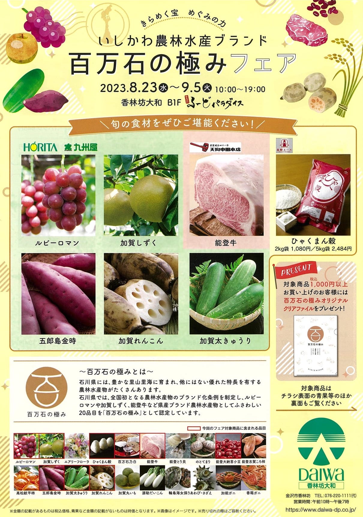 いしかわ農林水産ブランド【8/23〜9/5】『香林坊大和』にて旬の県産ブランド食材を堪能できる「百万石の極みフェア」を開催。