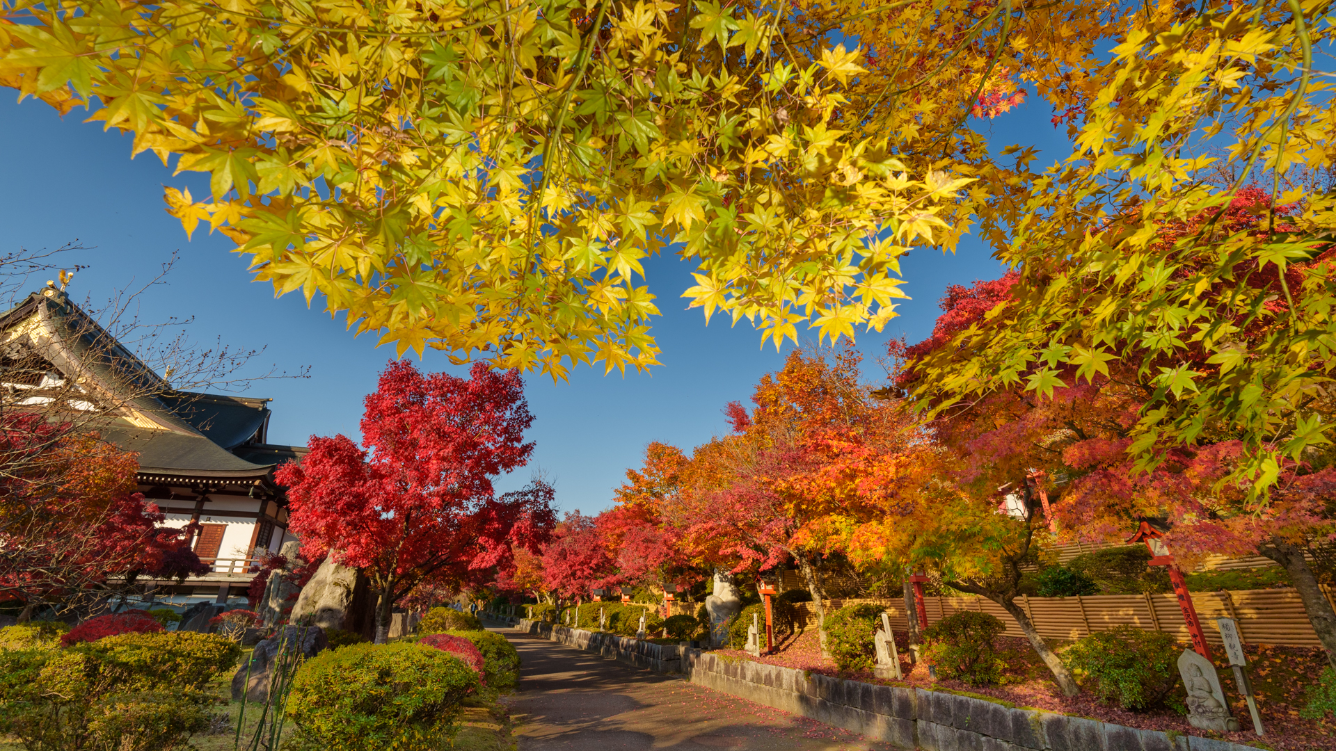 会場である「倶利迦羅不動寺 鳳凰殿」は台湾ヒノキを用いた木造建築や庭園、七福神像なども見られ、ご利益のありそうな中でのマラソン大会は他ではあまり経験できないのでは。時期が良ければ美しく色づいた紅葉も見られる。