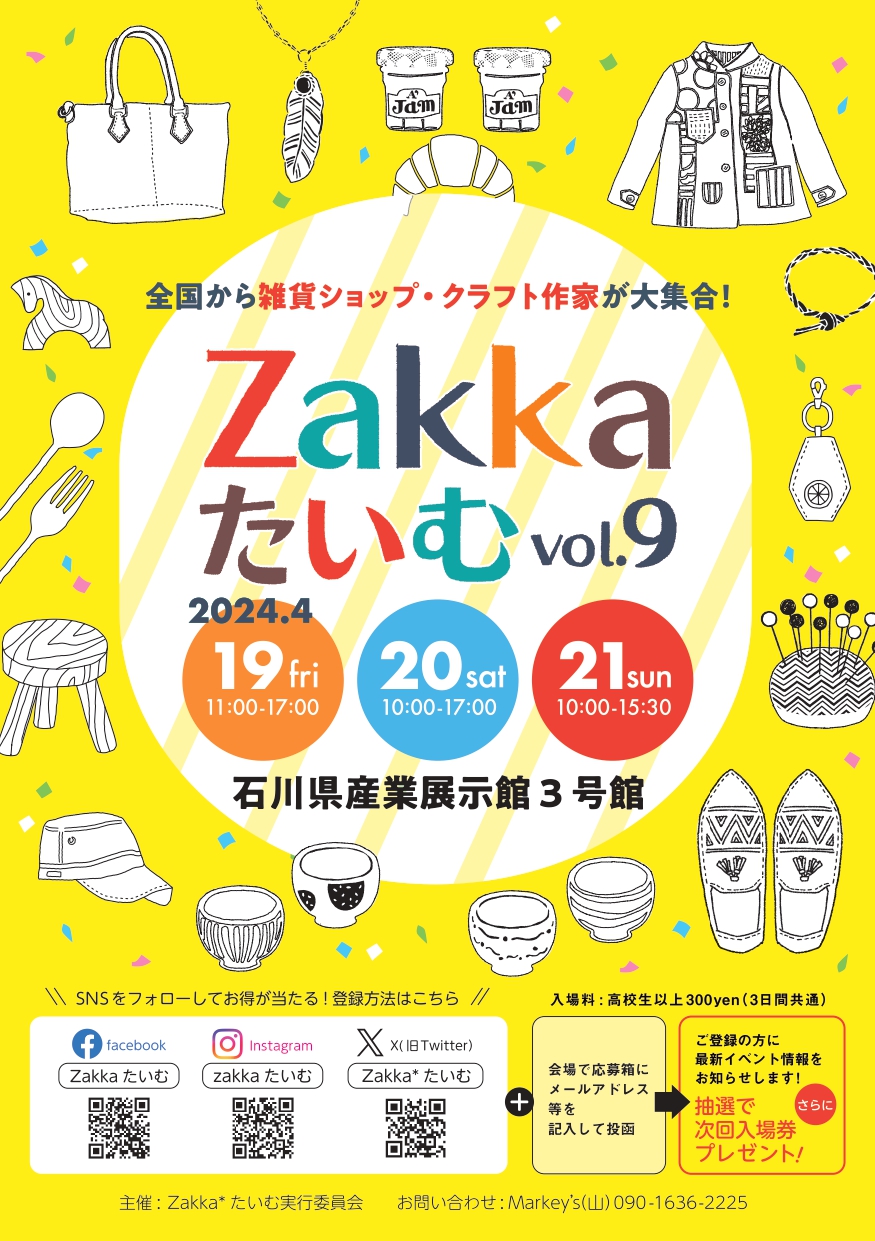 【4/19(金)〜21(日)】「Zakkaたいむ」が『石川県産業展示館3号館』にて開催。