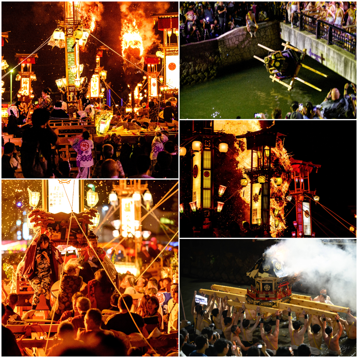 「あばれ祭り」はその名の通り、その荒々しさと勇壮さが魅力。日本遺産にも認定され、石川県の無形民俗文化財にもなっている。1日目には高さ7m、約40基ものキリコが港町を練り歩き、太鼓の音に合わせ、大松明の火の粉の中を乱舞。火の粉を浴びることで御利益があるとされる。2日目には神輿が町中を駆け抜けた後、勇ましい掛け声とともに担ぎ手により神輿は海や川へ投げ入れられ、叩いたり、壊したりするなどの「大暴れ」が行われる。神輿の破壊と聞くと驚いてしまうが、これは八坂神社の祭神:須佐之男命(すさのおのみこと)、通称牛頭天王への奉納を意味している。最後に神輿は八坂神社境内で置き松明に投げ込まれ、最後の「大暴れ」となる。