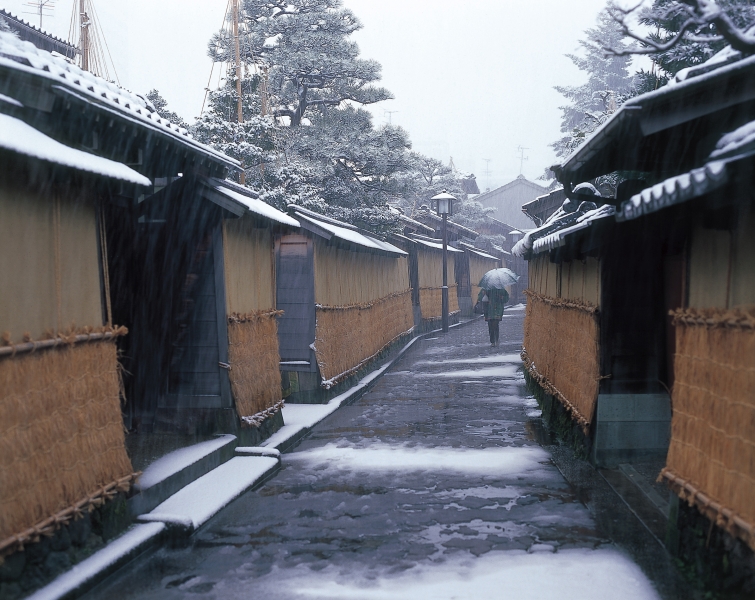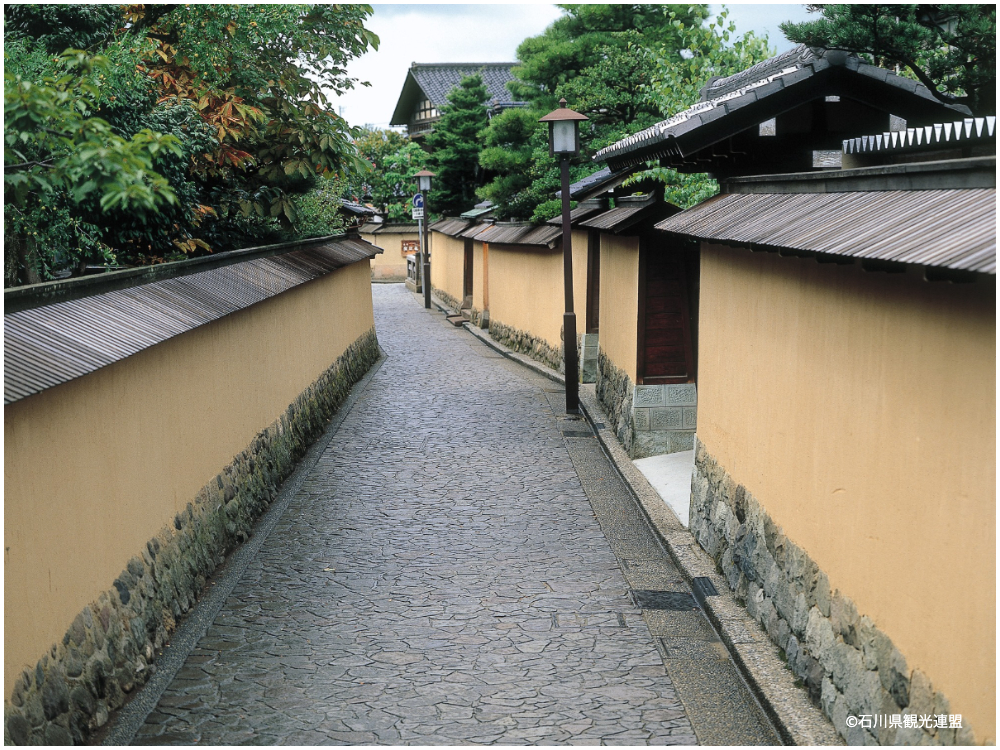 城下町・金沢らしい土塀や石畳の小路が残る『長町武家屋敷跡界隈』。藩政時代には中流の藩士の屋敷が軒を連ねており、伝統環境保存区域および景観地区に指定。今でも趣のある景観が維持されている。江戸時代に作られた古地図のままの町割りが続いており、まるでタイムトリップしたかのような気分で街歩きを楽しめる。