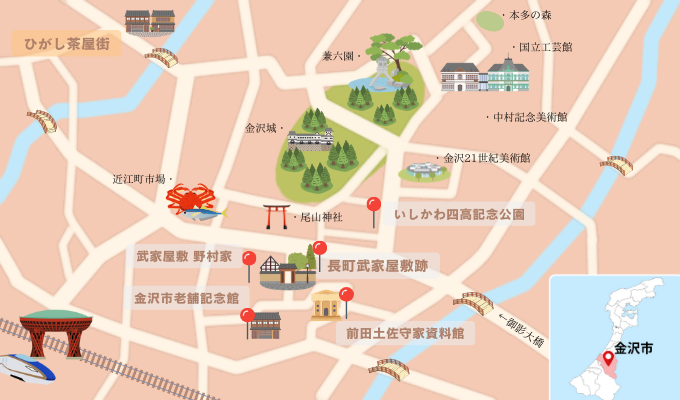 歴史と伝統にあふれる金沢は、歴史好きにはたまらない街。藩政時代に武士が暮らしていた屋敷跡を散策したり、加賀藩祖前田家の遺品に悠久のロマンを感じたり、伝統的な町民文化を学んだり。歴史的な散策を楽しめる半日モデルコースご紹介します。