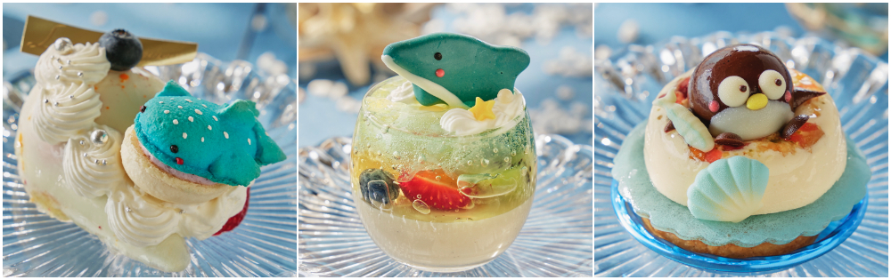 石川県唯一の水族館として親しまれている『のとじま水族館』と『ANAクラウンプラザホテル金沢』の初めてのコラボレーションスイーツが登場。第1弾となる今回は、ジンベエザメ・イルカ・ペンギンをモチーフにした、愛らしいケーキ3種類を用意。地元・能登の素材をふんだんに使用した見た目も味も抜群の夏らしいスイーツが揃う。