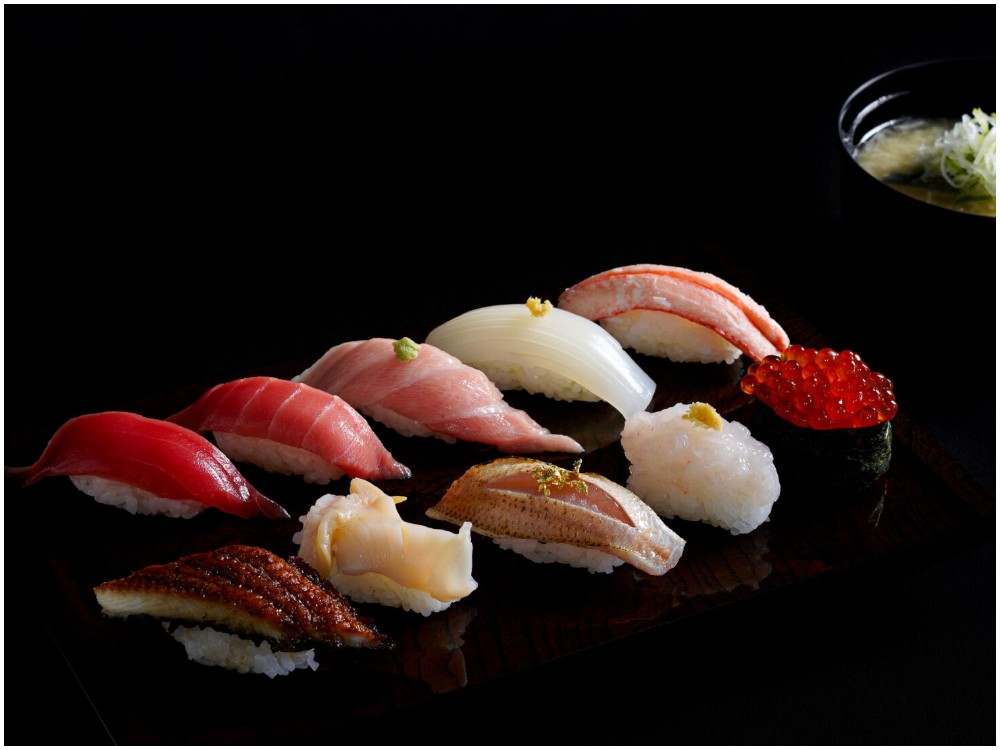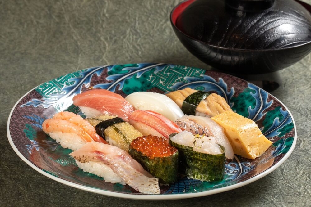 ネタへのこだわりもひとしおで、100㎏を超える黒鮪をはじめ、旬の地魚、江戸前仕込みのコハダ、フォアグラやA5和牛の霜降りロースなどの高級変わり種など、全国各地の美味珍味を揃える。