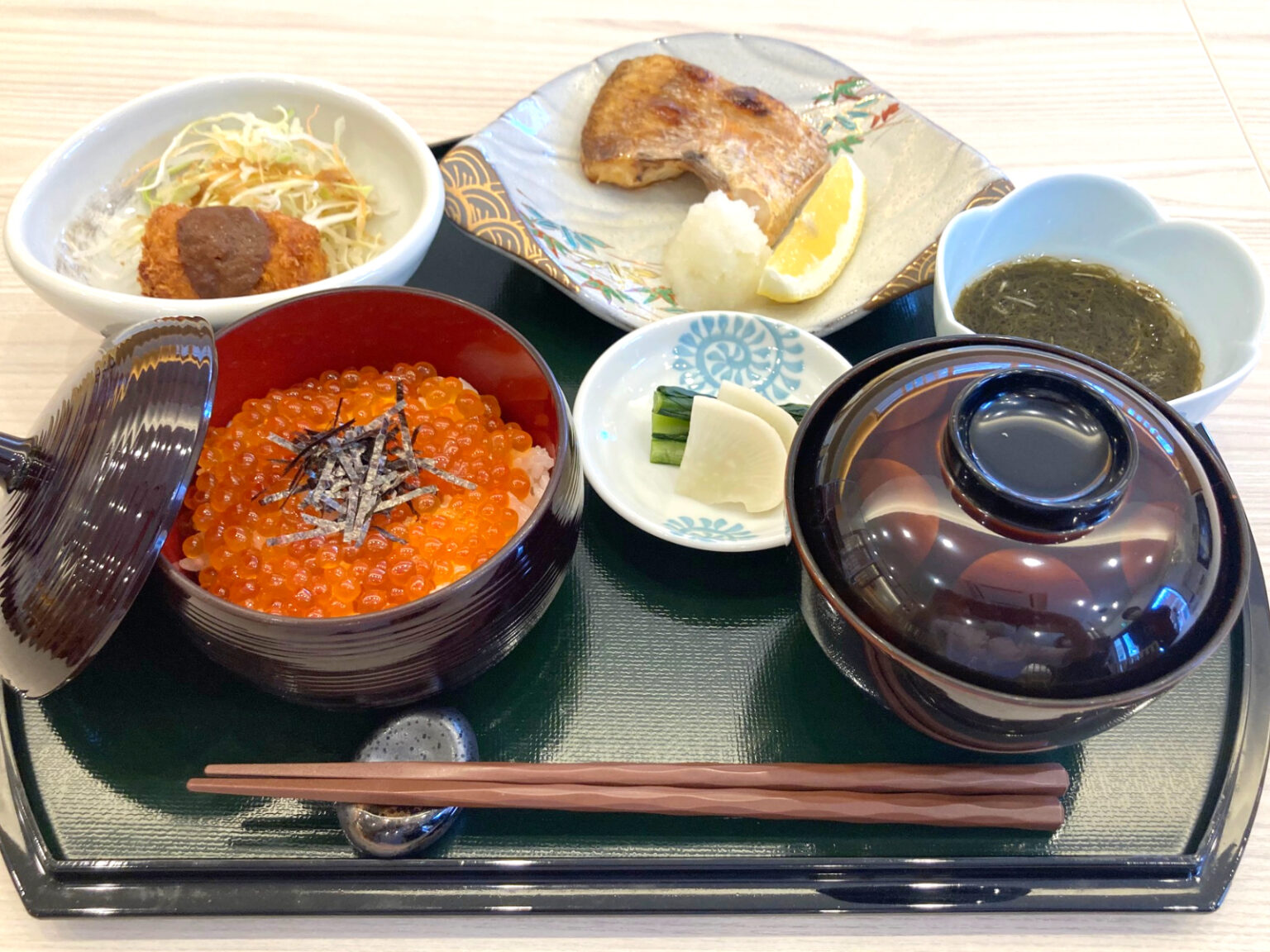 のどぐろはサイズの大きなものを切り身にしているため、脂乗りや香りが違うと評判。要望が多かった本店『味処髙﨑』の人気メニュー「いくら丼」に、名物カニクリームコロッケ、能登もずく、お麩の味噌汁が付いた豪華なセット 。