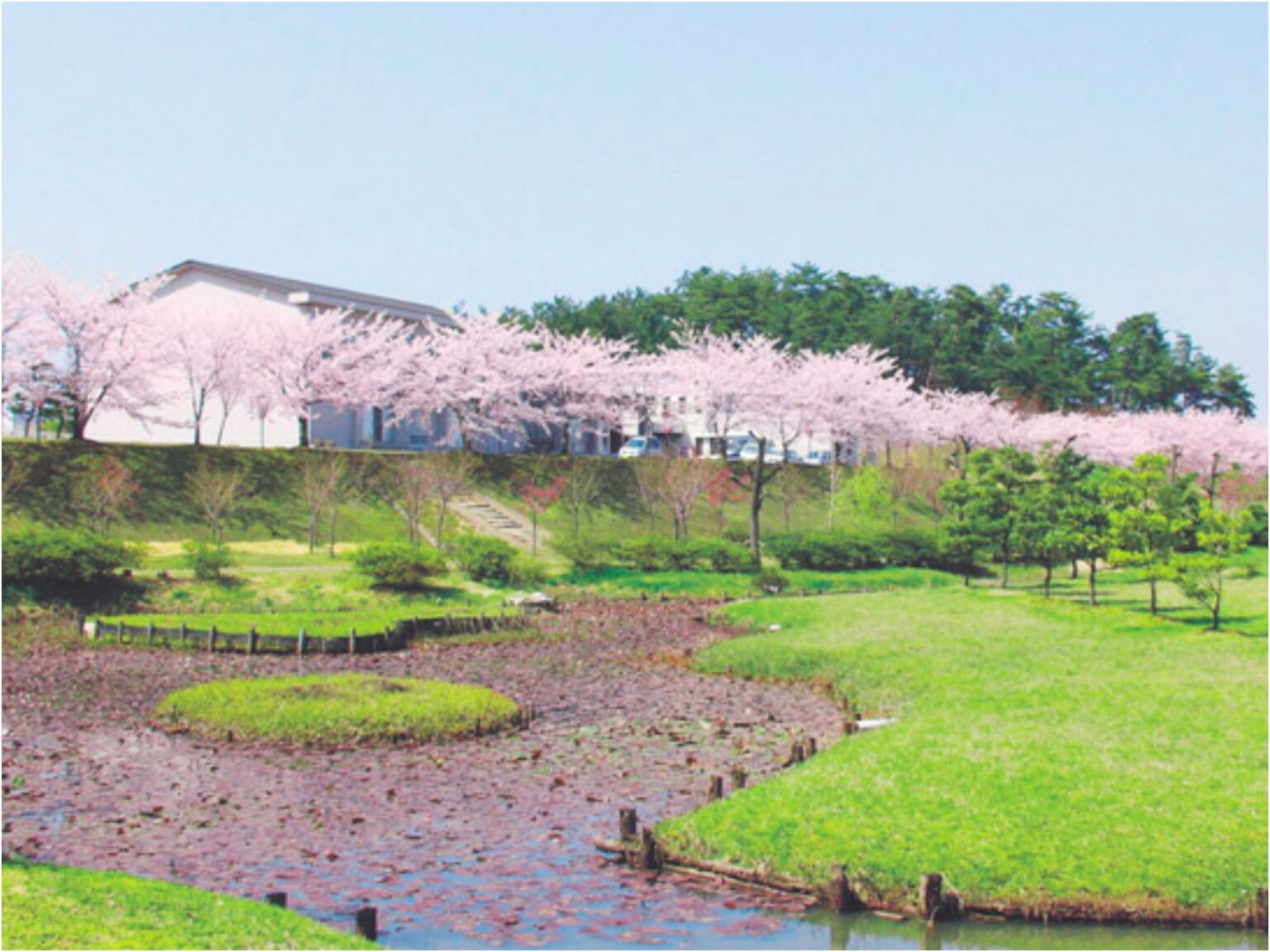 6世紀後半に築造された6基の円墳群も見られるほか、連日多くの入浴客でにぎわっている温泉施設『古墳の湯』もある憩いの場。園内には36種類、約1,000本の桜が植えられており名所として毎年大勢の人が訪れる。