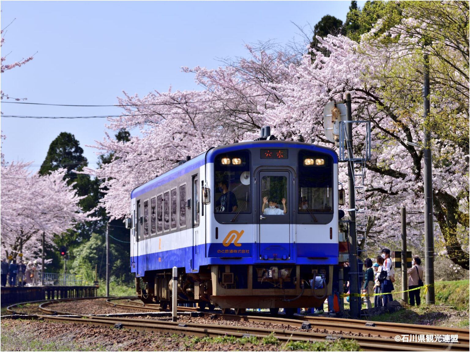 旧国鉄七尾線の開通を祝ってプラットホームの両脇に植樹された約100本のソメイヨシノが並ぶ。春には美しい花のトンネルを形成して、ホームを薄紅一色に染め上げる。4月上旬から4月中旬には夜桜を鑑賞することができる。