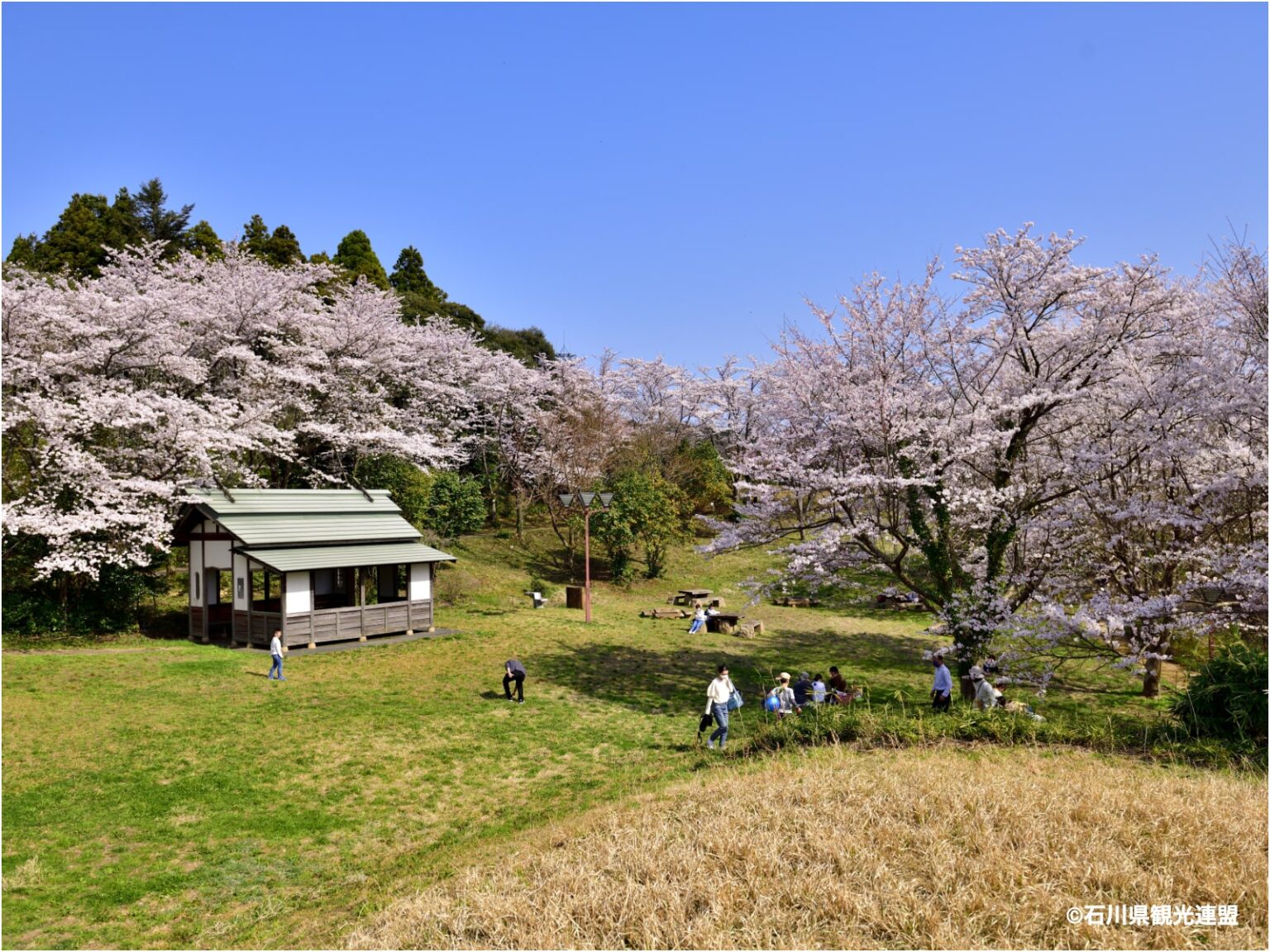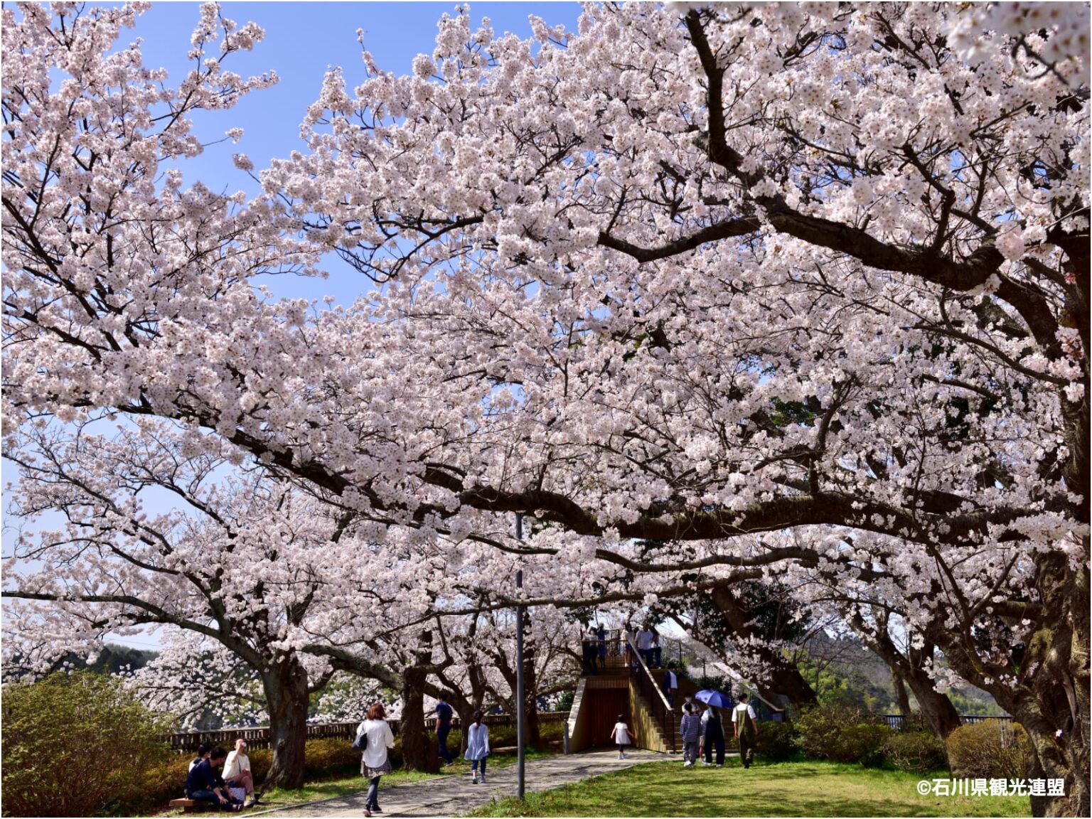 オムライスの生みの親とされる外食産業の元祖・故北橋茂男氏が建立した公園。ソメイヨシノなど約1,500本もの桜が咲き、能登有数の桜の名所として知られる。辺り一面に咲き乱れる桜の下は毎年大勢の花見客で賑わっている。