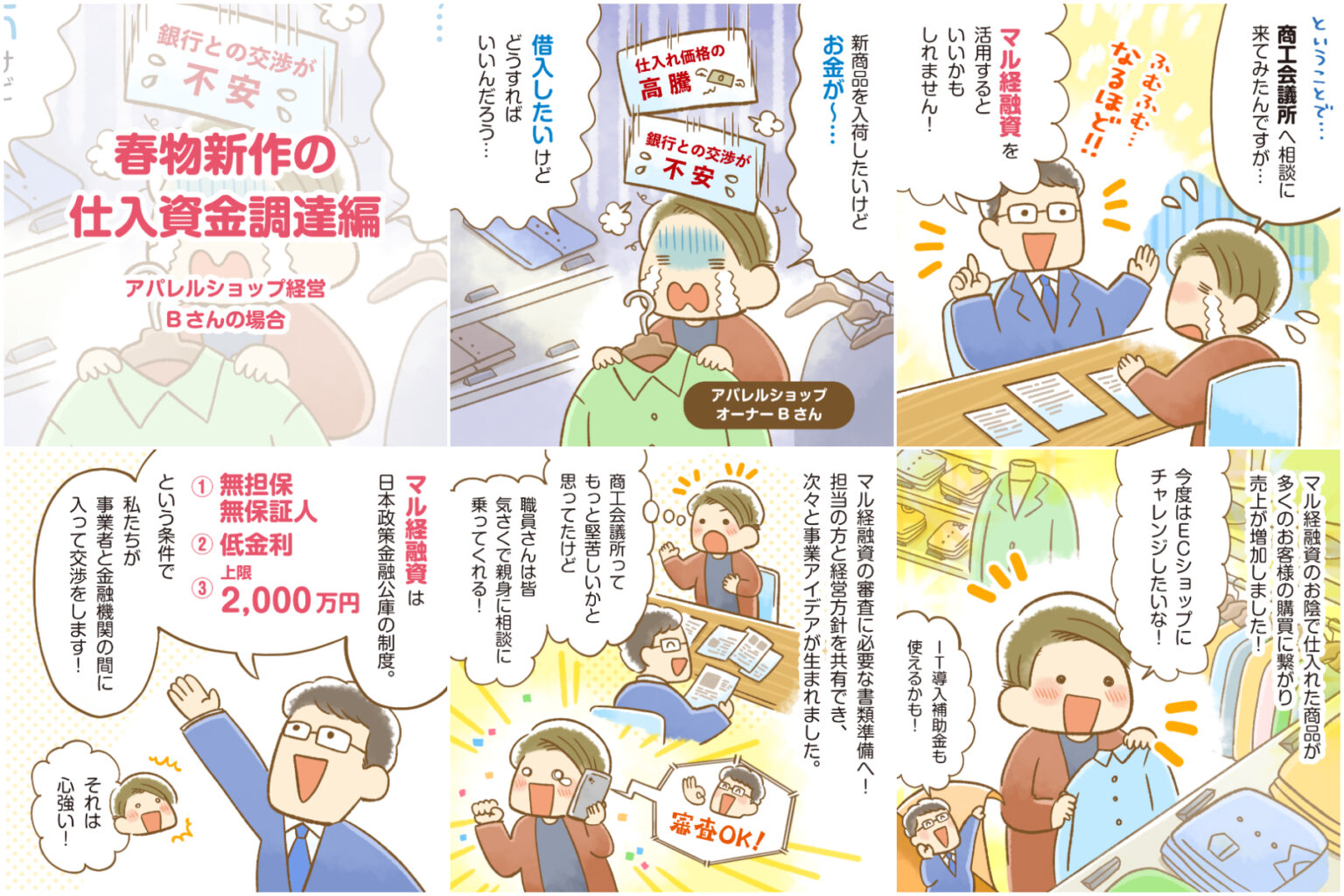 「小規模事業者持続化補助金」・「マル経融資」を事業者の方々に分かりやすく伝えるため、記事ではなく「マンガ」で表現することを提案。自身がインスタグラマーとして活躍されているイラストレーターを起用して、ユーザー目線で構成を考えていきました。4コマ漫画風のスライドで納品させていただき、『金沢商工会議所』ホームページで公開。後追いで、金沢日和でもリリースさせていただきました。「自分の店で補助金を考えてみようと思った」・「商工会議所で経営相談してみようと思った」と当初課題を改善する一歩となりました。