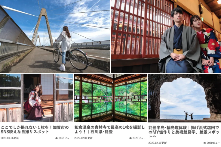 2022年7月に石川県観光連盟様より、プロポーザル方式で告示されていた本事業。石川県内の体験型旅行商品を実際に体験する記事を作成し、「ほっと石川旅ねっと」にて情報発信することにより、体験型旅行商品の販路拡大につなげることを目的とされていました。納品数は70記事以上、1記事あたり1500〜4000字程度で写真を200文字に1枚以上入れ、現地に赴いて取材・体験するという条件で臨場感あふれる記事が求められました。