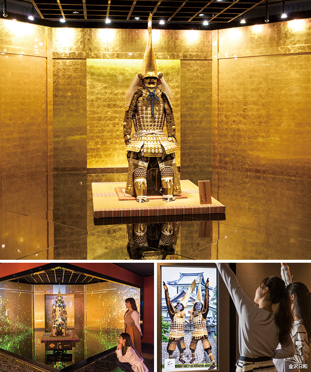 上、下左/一万枚の金箔が貼られた「金箔の間」。最先端のプロジェクションマッピングが上映されるなど様々な仕掛けが魅力。下右/金箔について楽しく学ぶことができる。