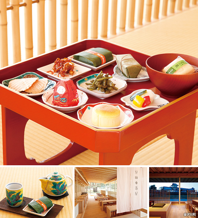 県内外の人たちが訪れる金沢城公園の寛ぎの場として設えられている鶴の丸休憩館。その中にあるのが『豆皿茶屋』だ。『金沢21世紀美術館』内の人気カフェレストラン『フュージョン21』などを展開するカフェレストラングループの『メープルハウス』が手がける金沢の新名所である。城内の橋爪門と五十間長屋を一望できる抜群のロケーションで、和菓子などを中心に、石川県の名産品を豆皿に少しずつ盛り付けたお茶のセットをいただくことができる。開業年の2017年には、グッドデザイン賞や日本サインデザイン賞など様々なアワードを受賞するなど、話題に事欠かない。海外の人たちに、金沢の良さを発信するスポットとして内外からの注目を浴びるに違いない。