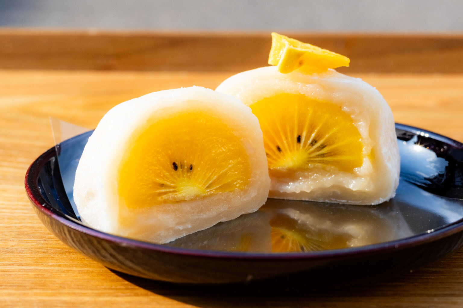 完熟キウイのとろける食感と滑らかな餡の組み合わせが新しい、トロピカルな大福。
