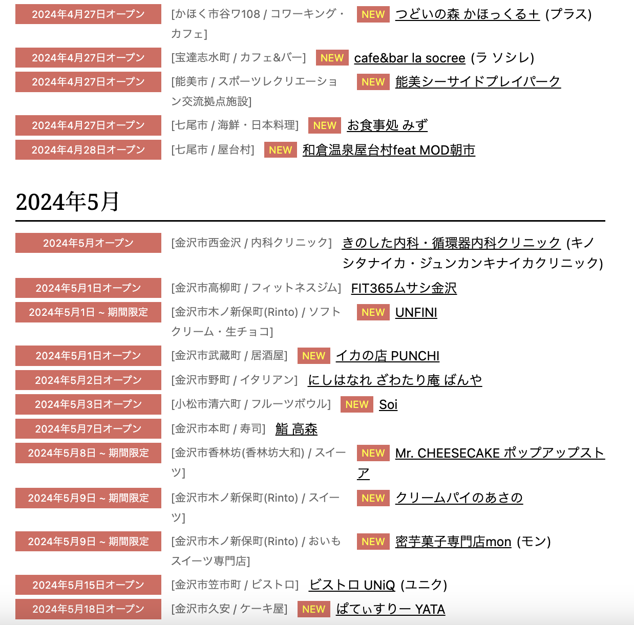 石川県内の新店舗まとめ【2024年1月〜4月】