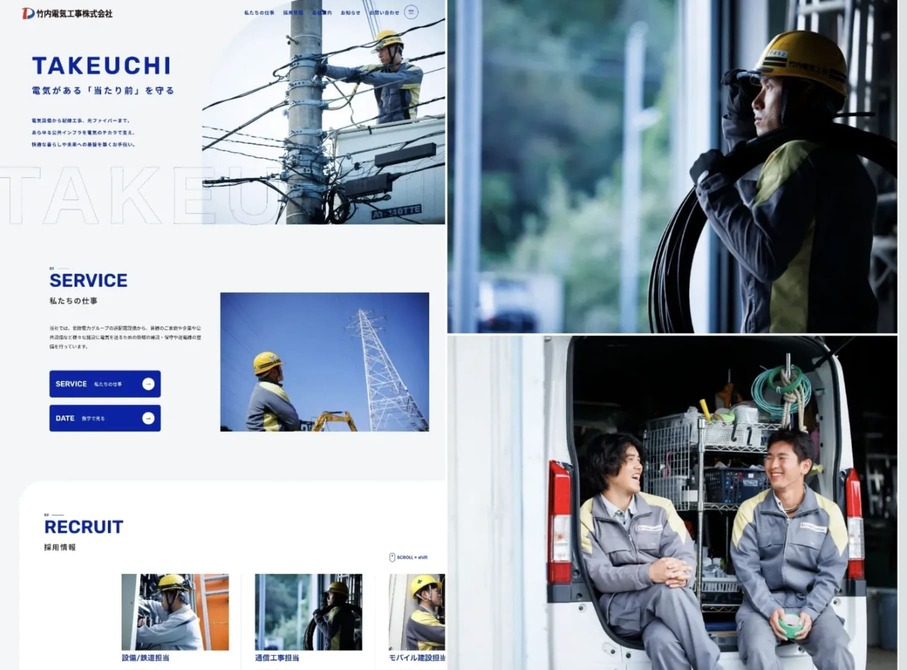 北陸電力から石川県や福井県を中心とした電力工事に関する仕事を受注し、安定した成長を見せる竹内電気工事株式会社。難所での鉄塔の建て替えや、電線のメンテナンス他、多岐に渡る作業の一つひとつに「竹内電気工事メソッド」がある、県内でも指折りの電気工事会社でいらっしゃいます。ところが、電気設備や公共インフラ整備など、表からは見えづらい業務内容が多いため、会社のイメージが正しく伝わらないと感じることが多かったそうです。また県内の建設業ではまだ珍しいフレックスタイムやフリーアドレス、WEB会議などを取り入れ、資格取得補助のほか、入社してからもスキルアップできる機会を増やすなど、「新しい働き方」、「長く働きやすい会社」という考えを実現されており、これらの取り組みや、正しい企業理解や業務イメージを伝えることで、効果的なリクルーティングにつなげたいとお考えでした。新社長就任、新社屋設立を契機と捉え、ホームページ制作のご相談をいただきました。
